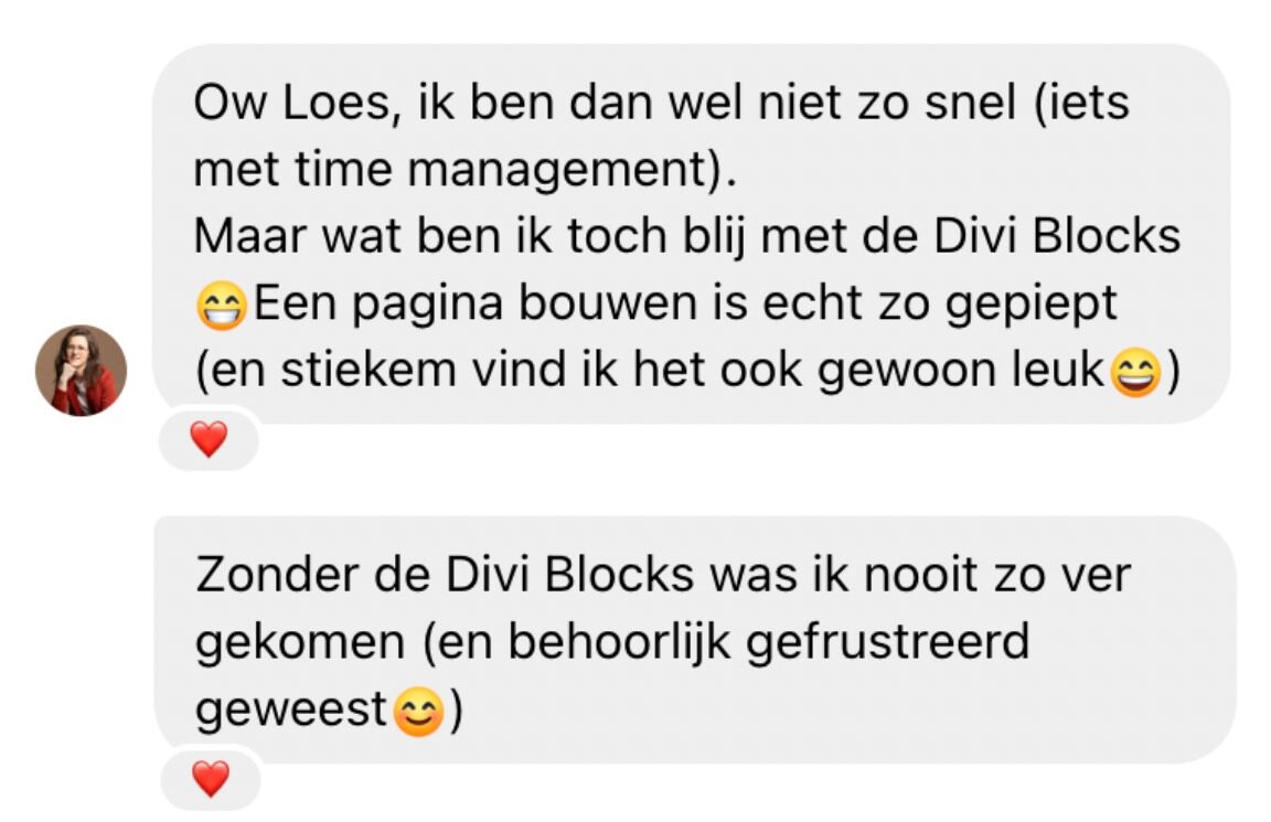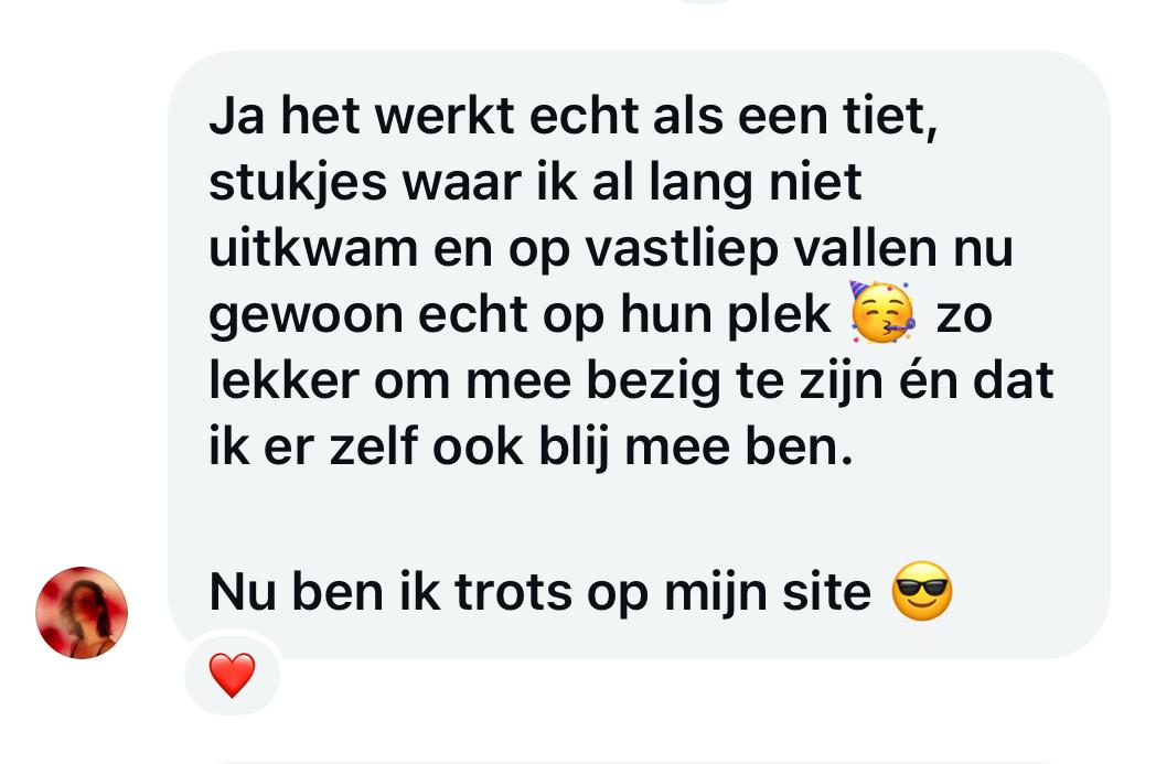 "Wat Loes heeft gebouwd is echt weer next level. Website design is altijd een dingetje. En nu met de building blocks weet je gewoon dat het in 1x spot-on is. Zowel qua design, als conversie"