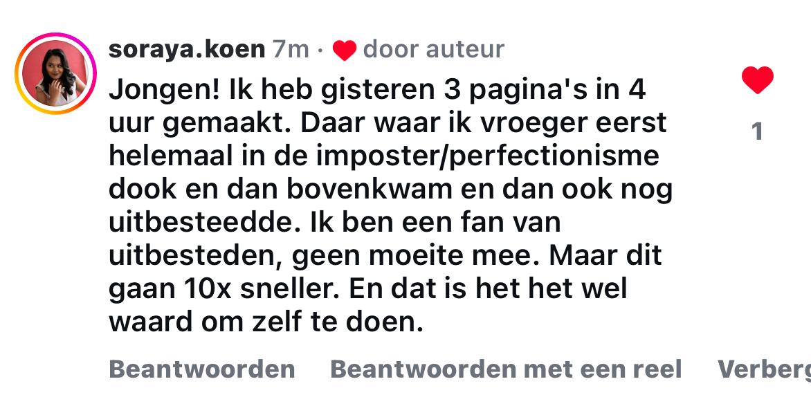 - Een sterk en super compleet vertrekpunt voor al je komende salespagina’s! Ik geef verschillende opties, invalshoeken, overwegingen etc. waarvan je gebruikt wat voor jóuw dienst het meest logisch is