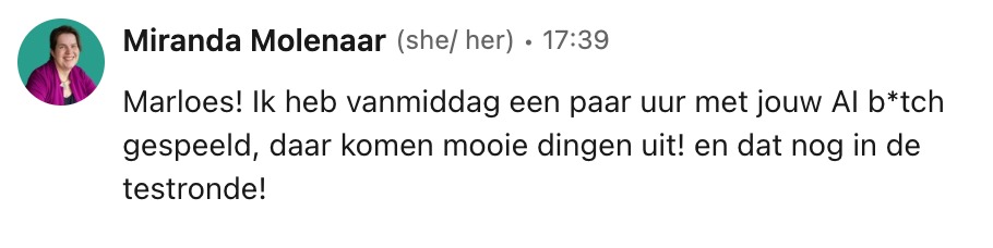 Mijn dochter en haar bestie (10YO) hebben vanmiddag fantastische teksten geschreven voor op de salespage van hun nieuwe bedrijf, dankzij jouw AI B*TCH. Niet het beste businessidee van de wereld, maar misschien zijn hun teksten wel zó goed, dat het uiteindelijk toch slaagt 😂.